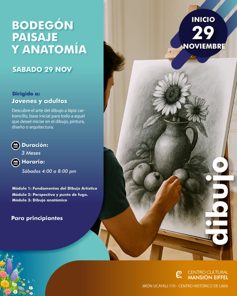 Contacto: Para más información y detalles sobre el taller, contáctanos a través de galeriaeiffel@gmail.com o 997141782 – 4276028